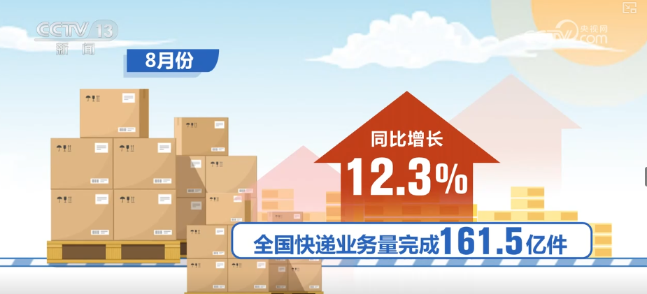 8月份,全国快递业务量完成161.5亿件,同比增长12.3%;电商物流总业务量指数为131.4点,比上月回升0.5点。电商快递物流业务结构持续优化,区域发展更趋均衡。