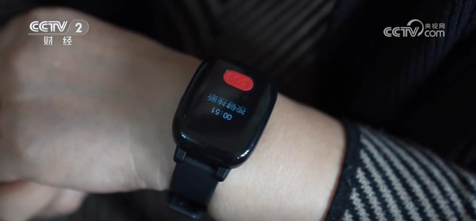 吕瑞华和老伴由于没有子女在身边照料,近期,社区工作人员为他们配备了智能腕表,表盘上有一个醒目的红色按钮,具备一键呼叫功能。老人表示,一摁按钮社区平台就知道,比如要聊天、挂号,送饭什么的都可以,有很多服务能满足,心理上就是觉得踏实。