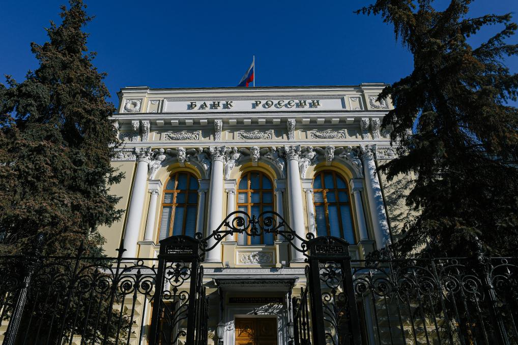 这是2022年2月25日在俄罗斯莫斯科拍摄的俄罗斯央行。新华社发(叶甫盖尼·西尼岑摄)
