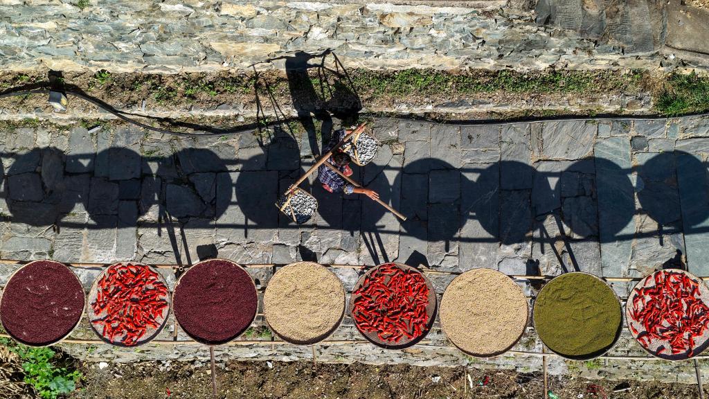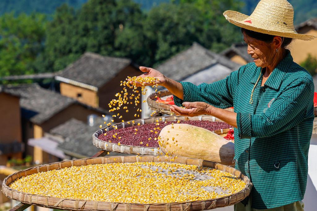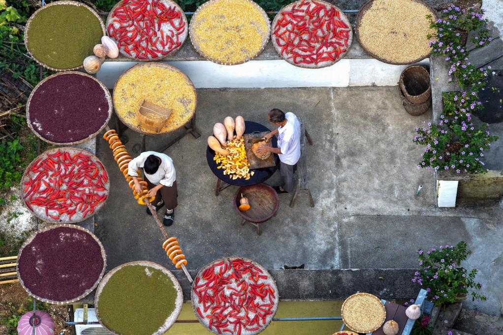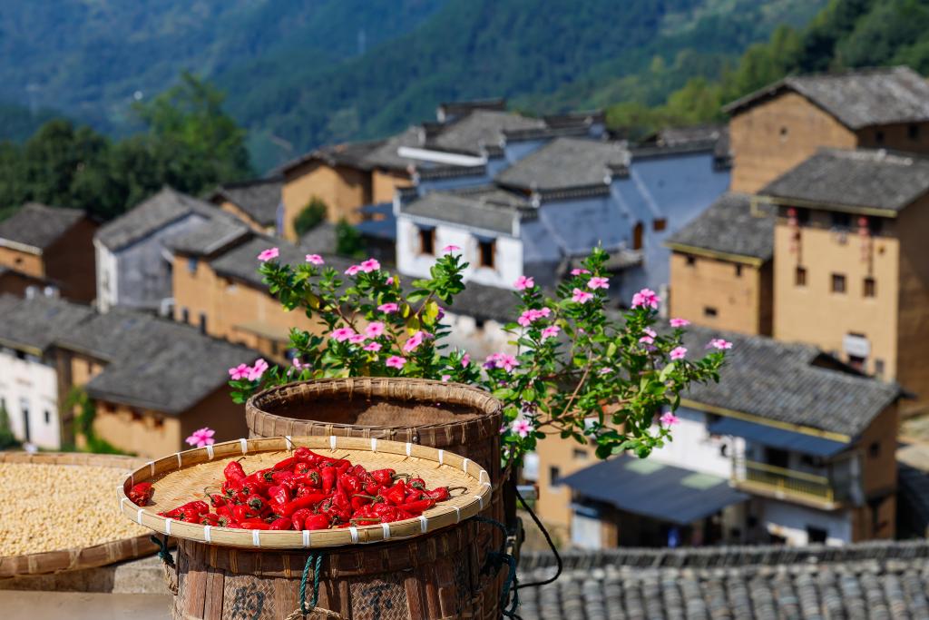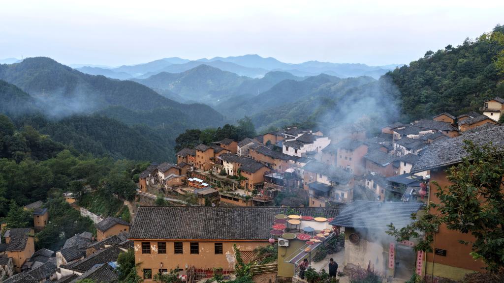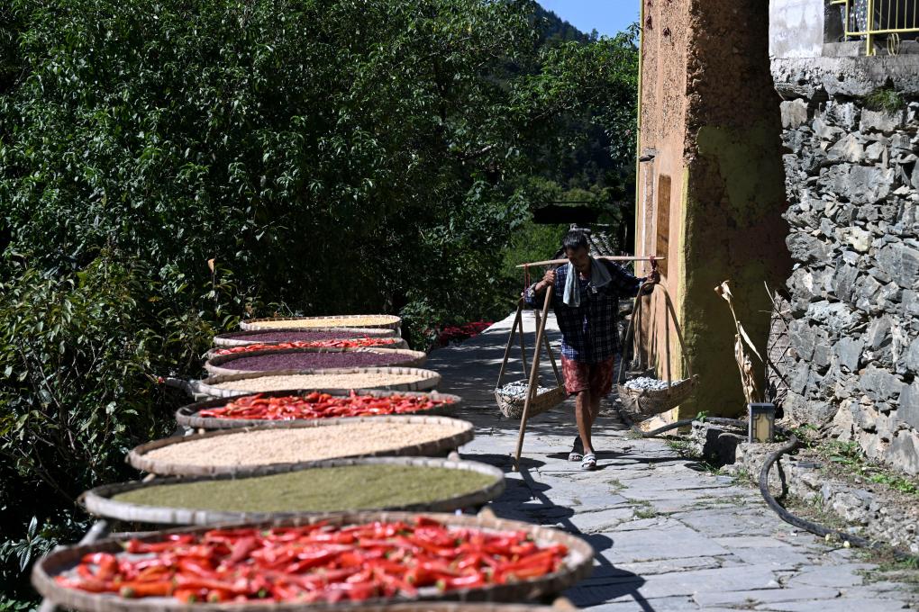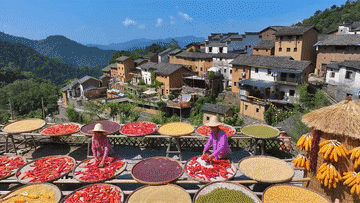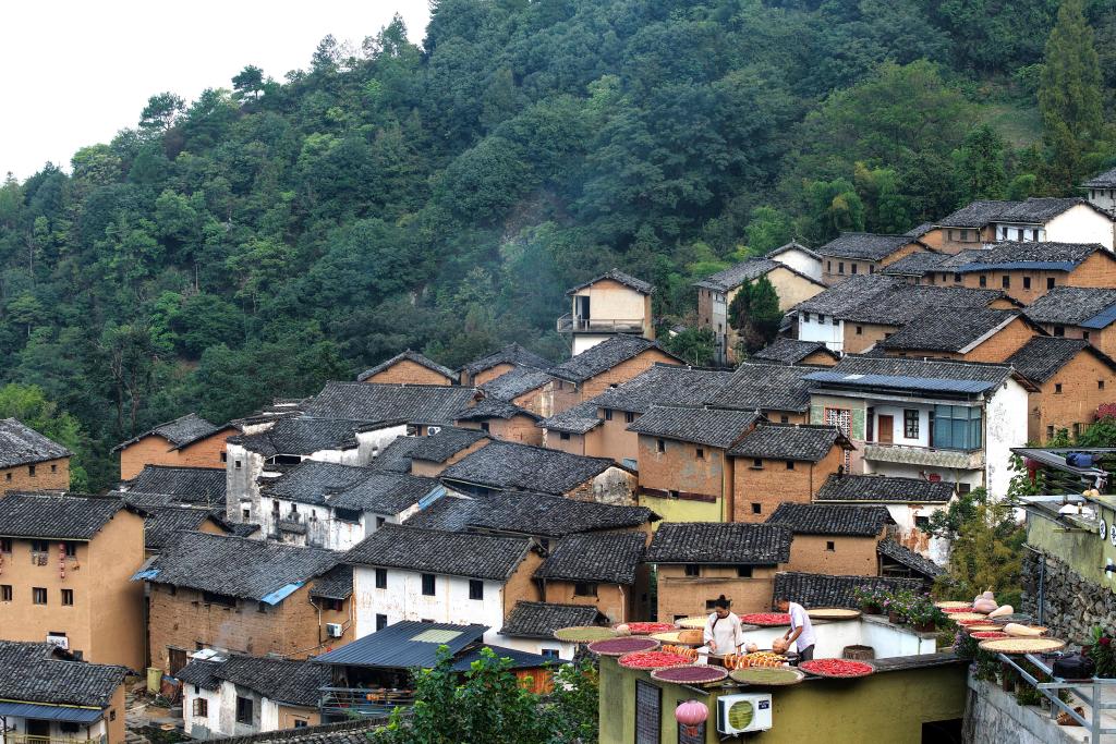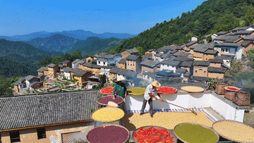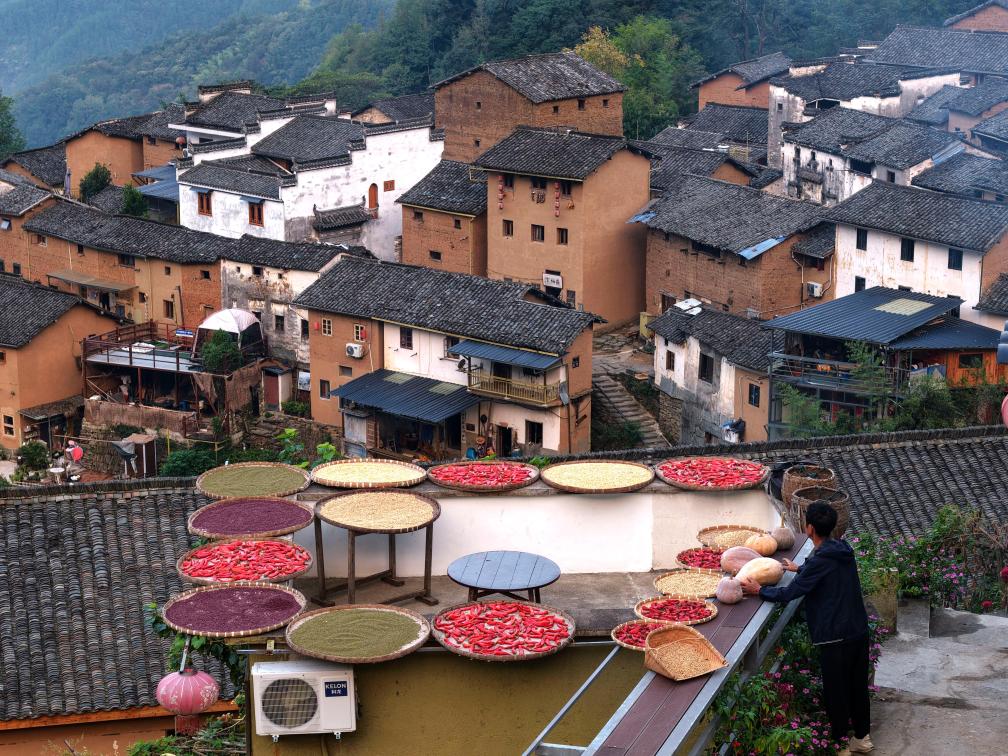 9月17日在安徽省黄山市歙县深渡镇阳产村拍摄的村民晾晒的农作物。
