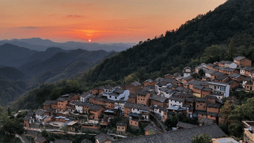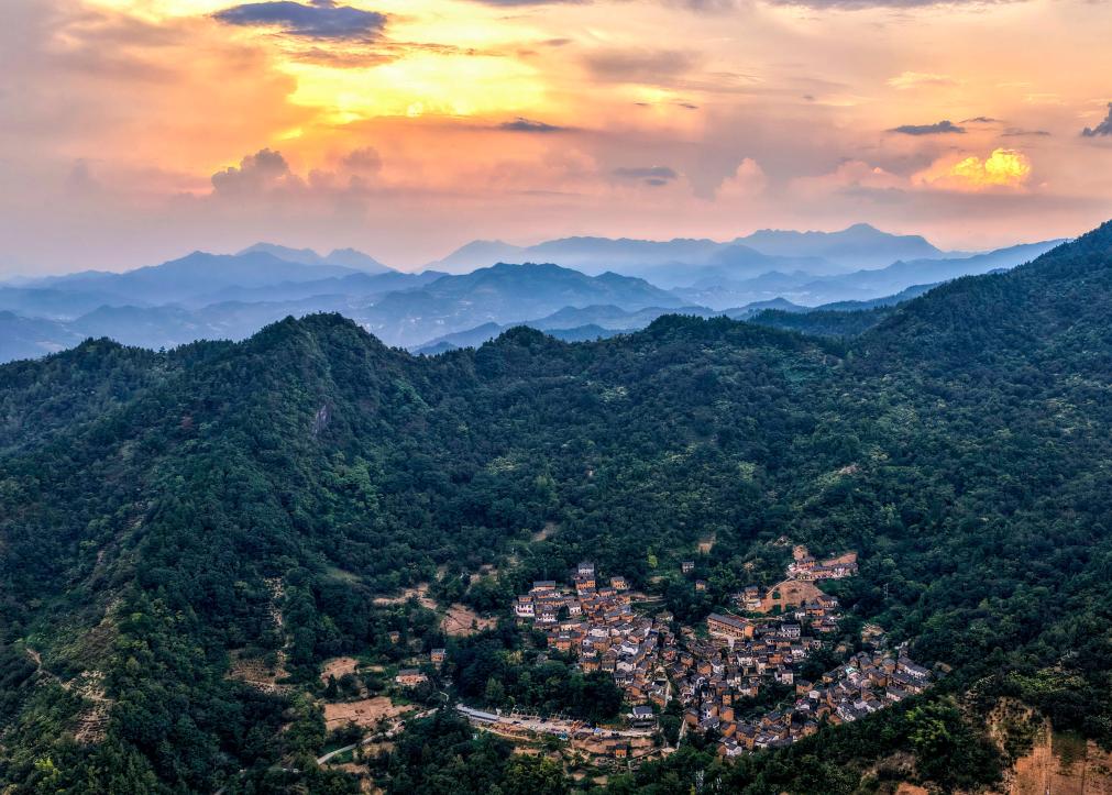 9月18日拍摄的夕阳照耀下的阳产村(无人机照片)。