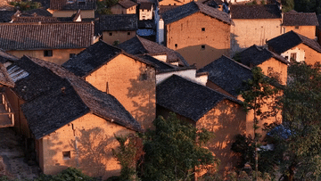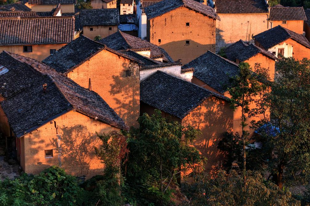 9月18日,夕阳照耀下,阳产村土楼树影婆娑(无人机照片)。