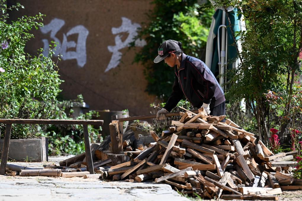 9月18日,阳产村村民在修缮房屋(无人机照片)。