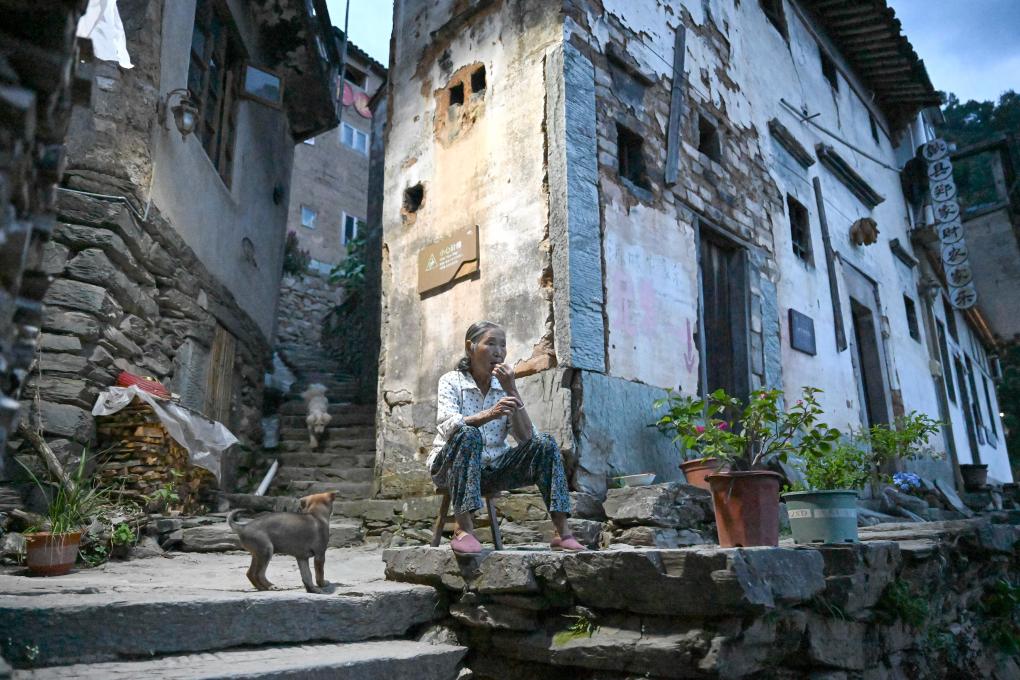 9月17日,阳产村村民吃完晚饭后在房前休息。
