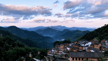 9月18日拍摄的安徽省黄山市歙县深渡镇阳产村晨景(无人机照片)。