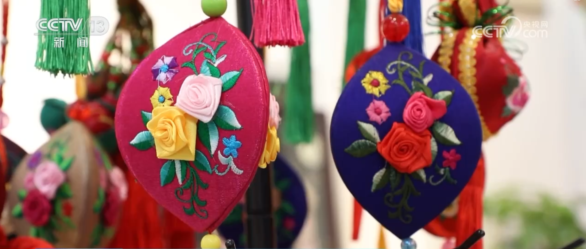 目前,庆阳市多家店铺的香包预订火热。近年来,当地通过直播电商、与文旅及企业合作等方式,持续拓宽销路。今年,庆阳香包年产量已达千万件,远销全球二十多个国家和地区。