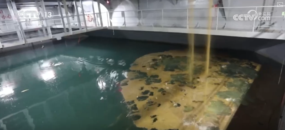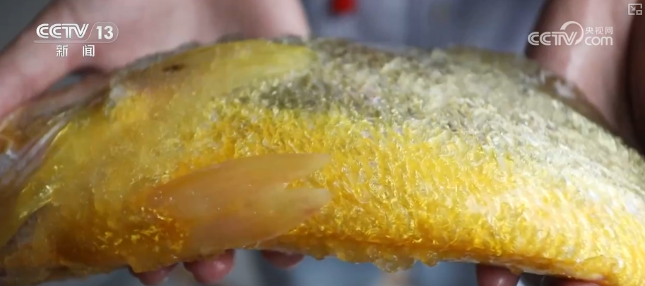 这里是“国信1号2-1”大型养殖工船的养殖舱,记者手中的大黄鱼是黄色的,而水池里正在生长的大黄鱼是白色的。这是因为大黄鱼体内有一种特殊的色素,在黑暗环境下色素会扩散,从而呈现黄色。而白天在光线照耀下色素会聚集,从而呈现白色。在捕捞前,工作人员会保持24小时黑暗环境,这样起捕后的大黄鱼通体金黄品相最佳。