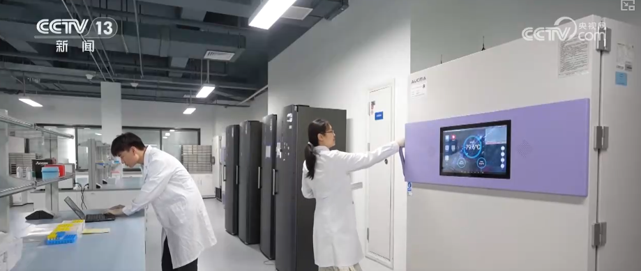 在群体资源库内,一个个海洋生物种质资源被精心保存在特制的容器中。