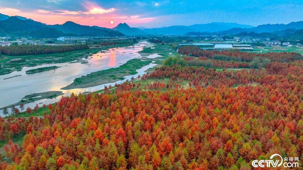 浙江省杭州市淳安县汾口镇红星村,武强溪生态湿地“水上森林”五彩斑斓,景美如画。