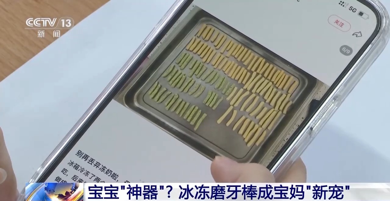 在网络平台,不少家长都在主动分享这种冰冻磨牙棒安抚婴儿的效果。记者在社交平台搜索“出牙期缓解”“冰冻磨牙棒”等关键词,发现了大量相关视频和笔记,大都展示了婴幼儿使用这种冰冻的磨牙棒之后,情绪趋于平稳的过程。