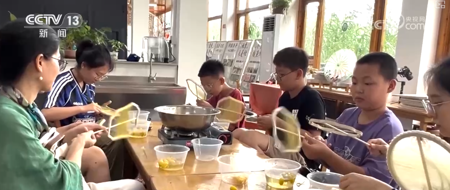 嘴里是可口的美食,眼前是整洁的村道和清澈的小河。如今,荻港村也依托鱼桑文化,办起了“鱼桑研学人家”,开发了捕鱼体验、鱼骨画手法制作体验、拓鱼砖、蚕茧灯等100多个研学课程。游客在这里可以体验当地文化,村民们一边生活、一边创业、一边致富。