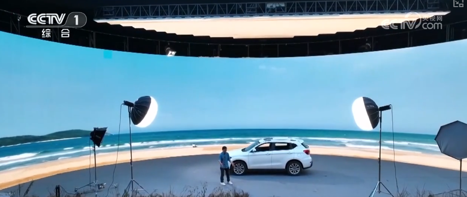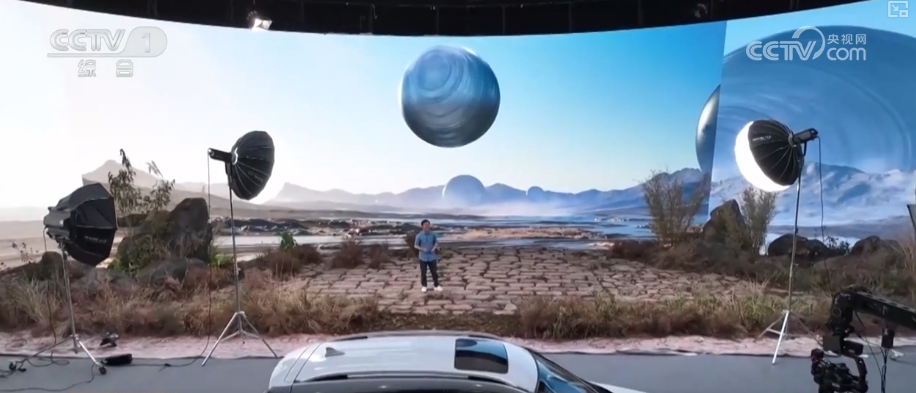 这里是重庆永川科技片场的虚拟拍摄棚里,LED背景屏在快速移动变化,所以实时渲染输出的高清画面会让大家觉得是车辆在快速行驶。这就是虚拟拍摄的魔法。自由切换、随时修改,能为剧组大幅节约置景成本和等待时间。