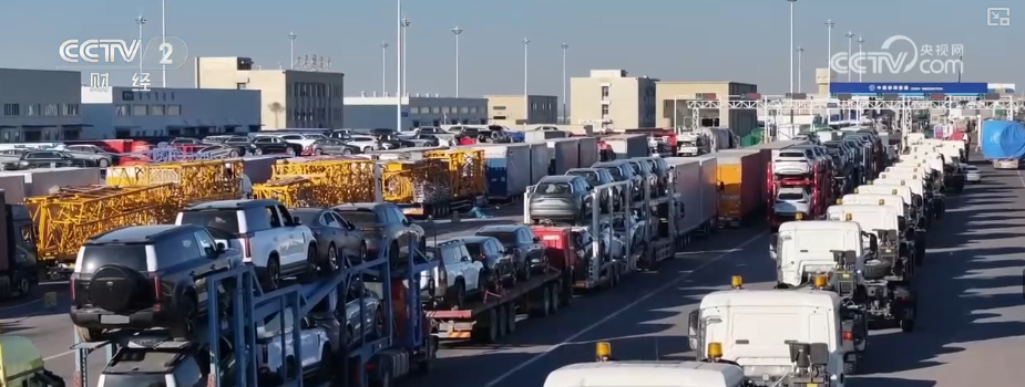 央视网消息:2025年以来,位于新疆伊犁的霍尔果斯口岸每天都有上百辆商品车在办理完查验手续后发往哈萨克斯坦、乌兹别克斯坦等国家,汽车出口呈现“井喷式”增长态势。