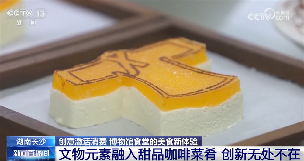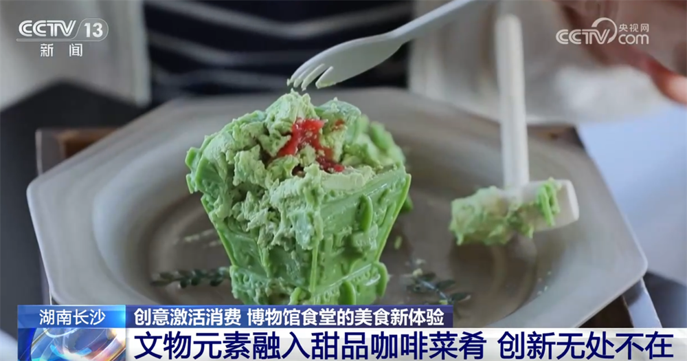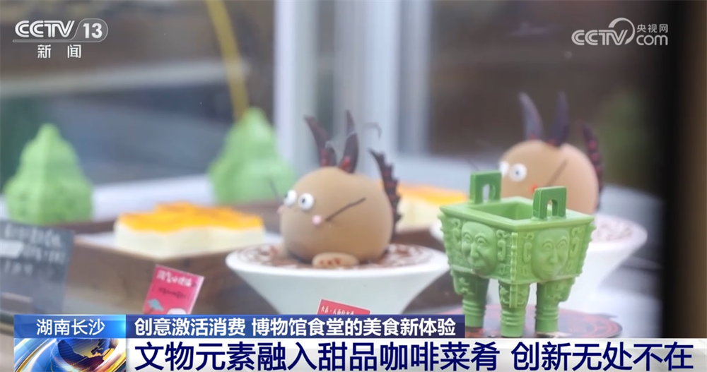 在湖南博物馆,当地还将文物纹样、器型等授权给了文化、餐饮机构,推出文物元素、传统美食、非遗体验相融合的甜品,广受好评。