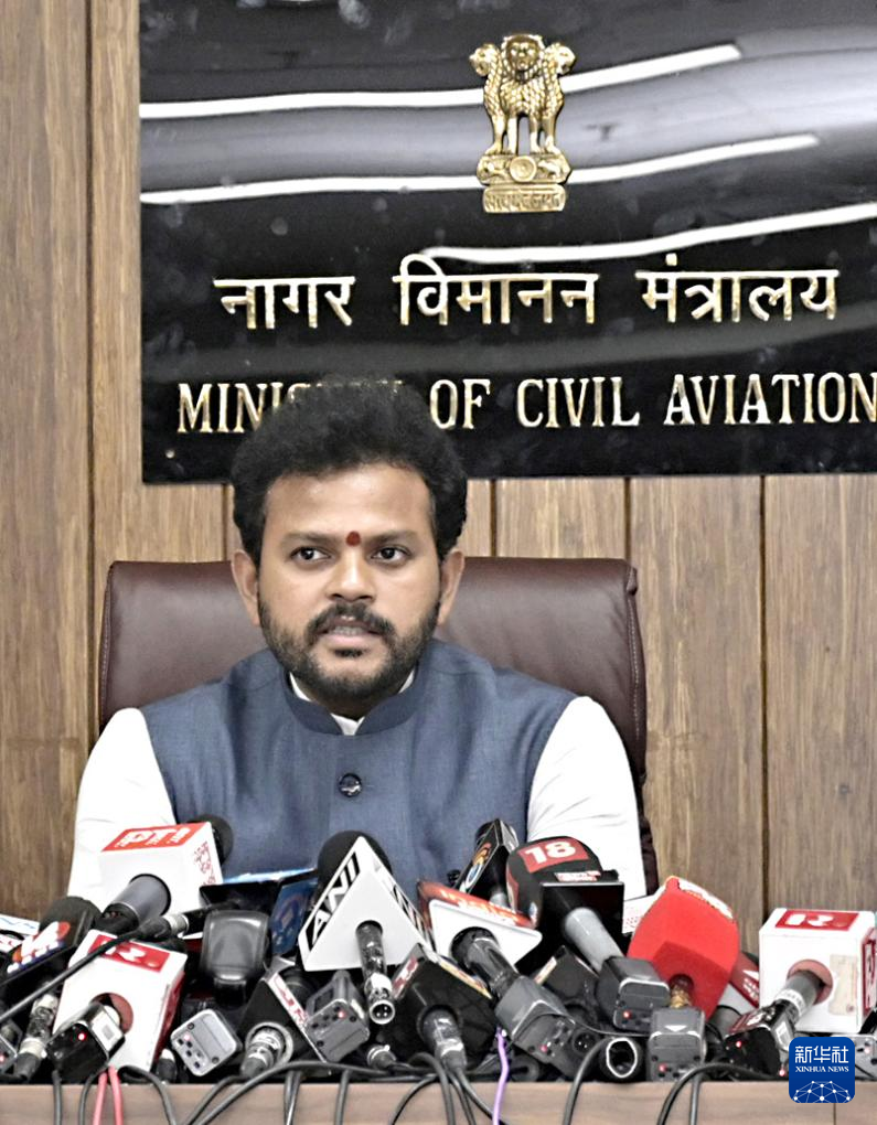 6月14日,印度航空部长拉姆·莫汉·奈杜在新德里出席新闻发布会。新华社发(印度政府新闻信息局供图)