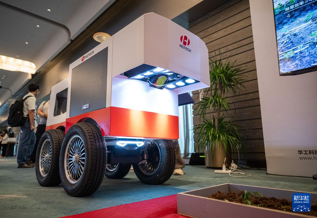 6月28日,全天时智能激光除草机器人在活动现场演示激光除草。